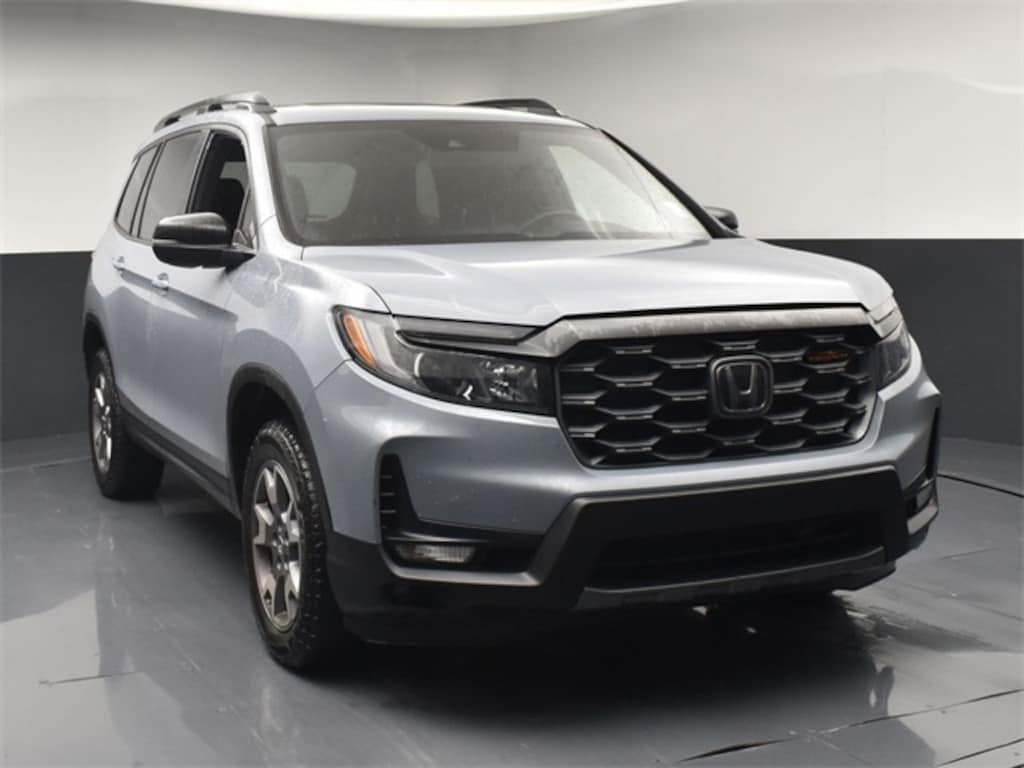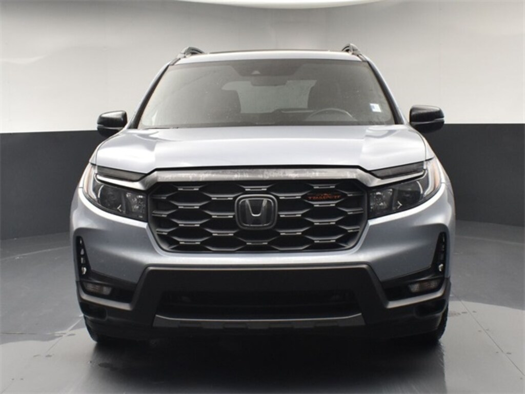 CARFAX One-Owner. Clean CARFAX. CLEAN CARFAX HISTORY, ONE OWNER, LOCAL TRADE IN, GREAT SERVICE RECORDS, PREMIUM PACKAGE, PREMIUM PACKAGE 3, NAVIGATION, BLIND SPOT ASSIST, LANE TRACKING, REARVIEW CAMERA, PANORAMA SUNROOF, PREMIUM LEATHER, 4-Wheel Disc Brakes, 4.334 Axle Ratio, 7 Speakers, A/V remote: CabinControl, ABS brakes, Air Conditioning, Alloy wheels, AM/FM radio: SiriusXM, Apple CarPlay/Android Auto, Auto High-beam Headlights, Auto-dimming Rear-View mirror, Automatic temperature control, Blind Spot Information (BSI) System warning, Brake assist, Bumpers: body-color, Compass, Delay-off headlights, Driver door bin, Driver vanity mirror, Driver's Seat Mounted Armrest, Dual front impact airbags, Dual front side impact airbags, Electronic Stability Control, Emergency communication system: HondaLink Assist, Exterior Parking Camera Rear, Forward collision: Collision Mitigation Braking System (CMBS) + FCW mitigation, Four wheel independent suspension, Front anti-roll bar, Front Bucket Seats, Front Center Armrest, Front dual zone A/C, Front fog lights, Front reading lights, Fully automatic headlights, Garage door transmitter: HomeLink, Heated door mirrors, Heated Front Bucket Seats, Heated front seats, Illuminated entry, Lane departure: Lane Keeping Assist System (LKAS) active, Leather-Trimmed Seats w/Orange Stitching, Low tire pressure warning, Memory seat, Navigation system: Honda Satellite-Linked Navigation System, Occupant sensing airbag, Outside temperature display, Overhead airbag, Overhead console, Panic alarm, Passenger door bin, Passenger seat mounted armrest, Passenger vanity mirror, Power door mirrors, Power driver seat, Power Liftgate, Power moonroof, Power passenger seat, Power steering, Power windows, Radio data system, Radio: 215-Watt Audio System w/7 Speakers, Rear air conditioning, Rear anti-roll bar, Rear reading lights, Rear seat center armrest, Rear window defroster, Rear window wiper, Remote keyless entry, Roof rack: rails only, Security system, Speed control, Speed-sensing steering, Split folding rear seat, Spoiler, Steering wheel mounted audio controls, Tachometer, Telescoping steering wheel, Tilt steering wheel, Traction control, Trip computer, Turn signal indicator mirrors, Variably intermittent wipers, Wheels: 18" Machine-Finish Alloy. Jackson Advatange includes Lifetime Carwashes, Lifetime Loaner vehicle, Anti-Theft Window Etch, Lunar Silver Metallic 2022 Honda Passport TrailSport AWD 9-Speed Automatic 3.5L V6 24V SOHC i-VTEC