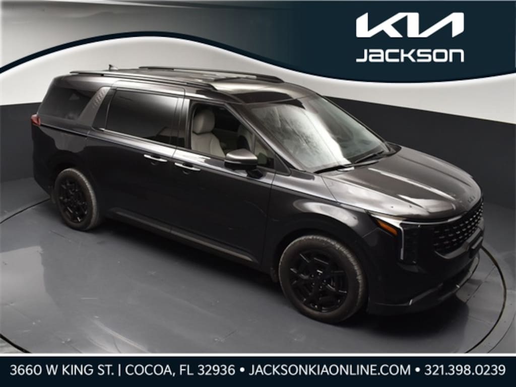 Clean CARFAX. KIA CERTIFIED PRE-OWNED, ONE OWNER, 1.6L I4 DGI Hybrid Turbocharged DOHC 16V LEV3-SULEV30, 12 Speakers, 2nd Row Laminated Windows, 3rd row seats: split-bench, 4-Wheel Disc Brakes, ABS brakes, Air Conditioning, Alloy wheels, AM/FM radio: SiriusXM, Ambient Lighting, Apple CarPlay & Android Auto, Auto High-beam Headlights, Auto-dimming Rear-View mirror, Automatic temperature control, Brake assist, Bumpers: body-color, Cargo Net, Compass, Delay-off headlights, Driver door bin, Driver vanity mirror, Dual front impact airbags, Dual front side impact airbags, Electronic Stability Control, Emergency communication system, Exterior Parking Camera Rear, Four wheel independent suspension, Front anti-roll bar, Front Bucket Seats, Front Center Armrest, Front dual zone A/C, Front fog lights, Front reading lights, Fully automatic headlights, Garage door transmitter: HomeLink, Heads-Up Display, Heated & Ventilated Front Bucket Seats, Heated door mirrors, Heated front seats, Heated steering wheel, Heated/Ventilated 2nd Row Power VIP Lounge Seats, High Glossy Interior Trim, Illuminated entry, Knee airbag, Leather Seat Trim, Leather Shift Knob, Leather steering wheel, Low tire pressure warning, Luxury Carpeted Floor Mats, Memory seat, Navigation system: AVN 5.0 Navigation System, Occupant sensing airbag, Outside temperature display, Overhead airbag, Overhead console, Panic alarm, Passenger door bin, Passenger vanity mirror, Power 2nd-Row Moonroof, Power door mirrors, Power driver seat, Power Liftgate, Power moonroof, Power passenger seat, Power steering, Power windows, Radio: AVN 5.0 Navigation System w/SiriusXM, Rain sensing wipers, Rear air conditioning, Rear anti-roll bar, Rear reading lights, Rear window defroster, Rear window wiper, Reclining 3rd row seat, Remote keyless entry, Security system, Speed control, Speed-sensing steering, Split folding rear seat, Spoiler, Steering wheel mounted audio controls, SX Prestige Seat Package, Tachometer, Telescoping steering wheel, Tilt steering wheel, Traction control, Trailer Prewire Harness, Trip computer, Turn signal indicator mirrors, Variably intermittent wipers, Ventilated front seats, Wheels: 7.5J x 19" Alloy Dark Edition. Jackson Advatange includes Lifetime Carwashes, Lifetime Loaner vehicle, Anti-Theft Window Etch, Panthera Metal 2025 Kia Carnival Hybrid SX Prestige FWD 6-Speed Automatic 1.6L I4 DGI Hybrid Turbocharged DOHC 16V LEV3-SULEV30